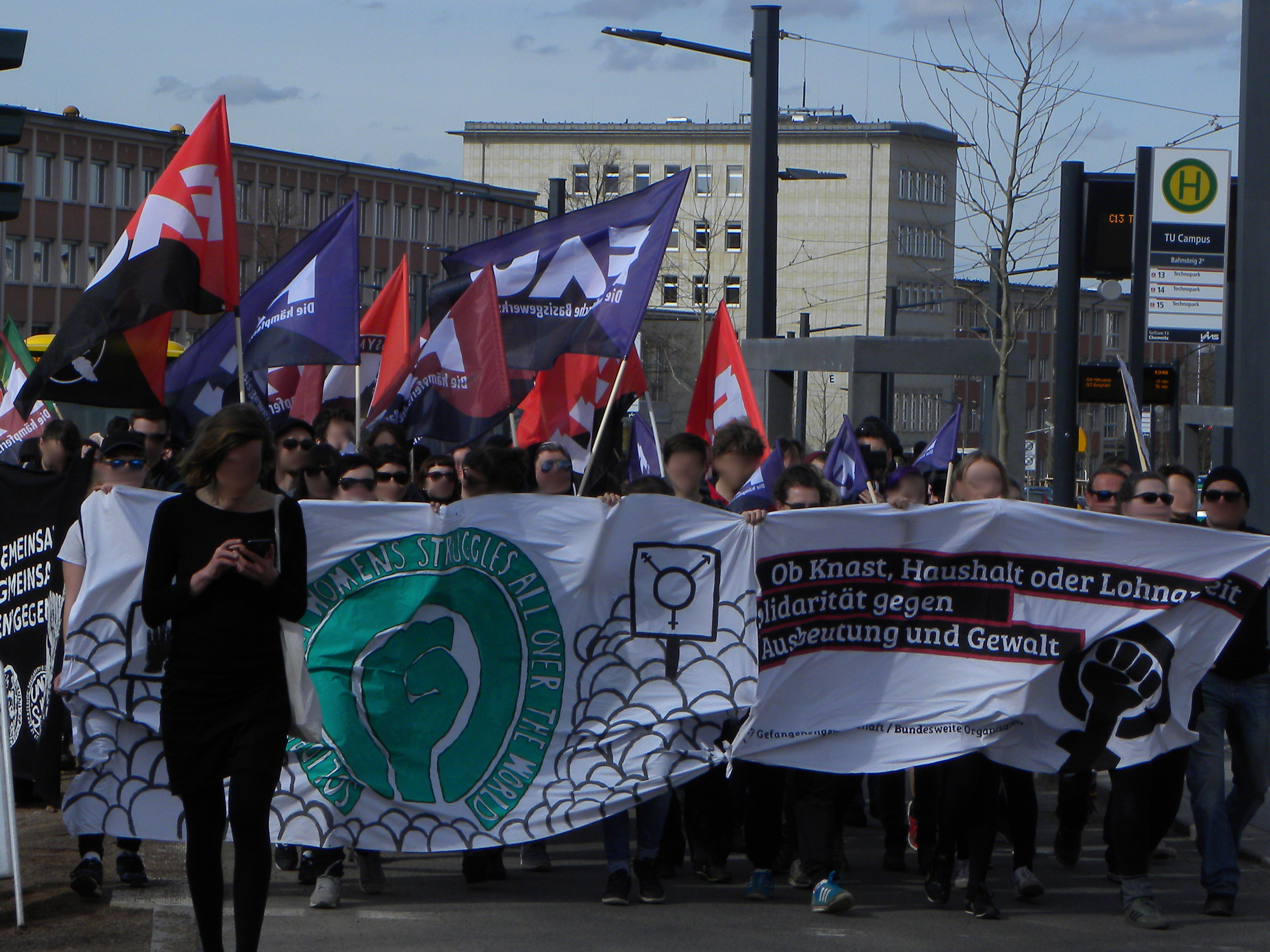 Vergangenen Sonntag fand in Chemnitz eine feministische Demonstration mit etwa 250 Teilnehmenden statt. Aufgerufen hatte die Gefangenen-Gewerkschaft/Bundesweite Organisation (GG/BO), sowie Basisgewerkschaften der Freien Arbeiterinnen- und Arbeiterunion (FAU), sowie feministische Gruppen. Die Veranstaltung war eingebettet in eine Aktionswoche rund um den Frauenkampftag am 8. März und sollte ein Schlaglicht auf die besonders prekären Bedingungen weiblicher Gefangener werfen. Die Polizei war mit 180 Beamt*innen vor Ort.