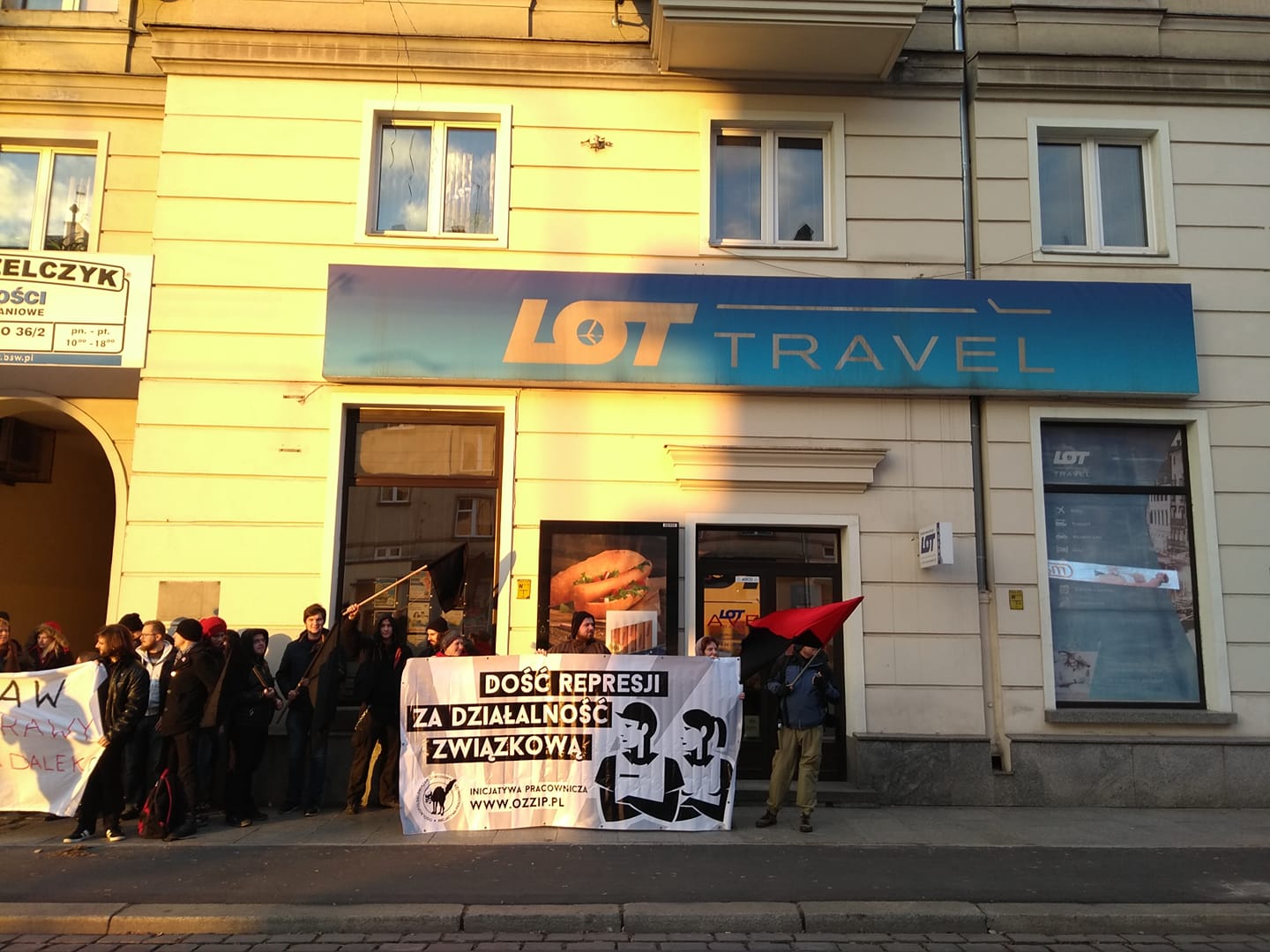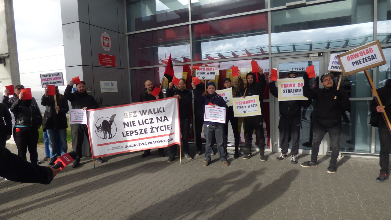 Die IP hat in den letzten Wochen unter anderem die Streikkundgebung der Streikenden vor dem Firmensitz in Warschau vor Ort unterstützt und die Solidaritätskundgebung mit den Streikenden an der Universität Warschau organisiert, an der die Hochschulgewerkschaften und Student*innenorganisationen, Student*innen und wissenschaftliche Arbeiter*innen beteiligt waren. Auch in anderen Städten wie Breslau oder Posen hat die IP Unterstützungsaktionen für die Streikenden durchgeführt. Am vergangenem Wochenende haben die IP-Mitglieder die Solidaritätskundgebung auf dem Ławica-Flughafen in Posen organisiert, in Breslau demonstrierten sie vor dem lokalen Standort von LOT.