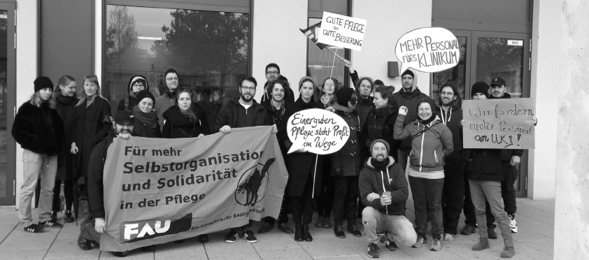 Es braucht regelmäßig genug Raum zur Bewertung der eigenen (FAU-)Strategie in einer solchen Kampagne von Stellvertretergewerkschaften. Sonst laufen wir Gefahr, durch Organizing bloß zu deren Mitgliedergewinnung beizutragen. Sie werden mit ihrem von oben gesteuerten Organizing-Ansatz wahrscheinlich kurzfristig Erfolge haben (bspw. mit TV Stud in anderen Bundesländern), aber nachhaltig ist das nicht (DA 2016). Echte Selbstorganisierung braucht ihre Zeit, trägt aber entsprechende Früchte!