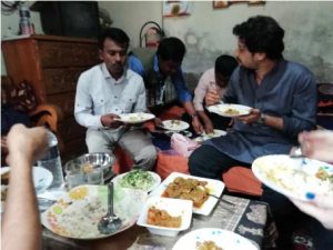 Zum Abschluss unserer ereignisreichen und spannenden Reise gab es ein gemeinsames Mittagessen im Wohnzimmer/Schlafzimmer von Mahmud, einem Gewerkschaftssekretär der GWTUC.
