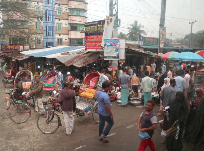 In den darauffolgenden Tagen hatten wir demzufolge noch zwei Termine. Mit den Aktiven im Auraj Netzwerk und eine Besichtigung in einem Industriegebiet gleich vor Dhaka. Das Treffen mit einigen Aktiven des Auraj Netzwerks fand in einer privaten Wohnung statt. Wir wurden abgeholt und sind mit einem Uber-Taxi quer durch die Stadt gefahren. In der Wohnung wurden wir von acht Auraj Mitgliedern begrüßt. Das Treffen fand in einer netten Atmosphäre statt. Sie wollten viel darüber wissen, wie die FAU organisiert ist. Sie selbst stehen erst am Anfang ihrer Tätigkeiten und versuchen aktuell ihr Netzwerk an den (Hoch-)Schulen auszubauen, um anschließend auf Belegschaften in Fabriken zuzugehen. Es sind überwiegend Studierende oder ehemalige Studierende, die mittlerweile Journalist*innen sind. Das Netzwerk besteht aus etwa 50 Aktiven in und außerhalb von Dhaka. Sie verwenden viel Energie darauf, philosophische und theoretische Diskussionen zu führen, bringen sich aber auch bei Aktivitäten zum 1. Mai ein und setzen inhaltliche Akzente.