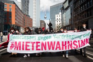 „Wie eine Aufwärmübung“ nach einem Jahr Coronapandemie: Trotz regnerischem Wetter und Corona-Blues zog die Housing-Action-Day-Demonstration durch die Hauptstadt. Zwischen dem Roten Rathaus und dem Mariannenplatz liefen dutzende von Mieter:inneninitiativen, linken Gewerkschaften und autonome Gruppen zusammen und skandierten Slogans wie „Kein Gott, kein Staat, kein Mietvertrag“. Banner und Redner:innen trugen brisante und kämpferische Aussagen, vom Ende der Zwangsräumungen und der Verdrängung von Freiräumen bis zur Vergesellschaftung von großen Wohnungskonzernen.