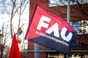 Arbeitsbereich auf die Tagesordnung zu setzen.“, bekräftigt Chris. Dabei setzt die FAU den Schwerpunkt auf konkrete Arbeitskämpfe und die Unterstützung von Kollektivbetrieben. In Berlin macht das zum Beispiel die Union Coop // Föderation, die von der FAUB initiiert wurde und in der sich ein Dutzend selbstverwaltete Betriebe zusammengeschlossen haben.