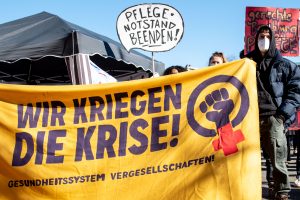 Tatsächlich könnte die „Wir kriegen die Krise“-Kundgebung eine Inspirationsquelle für spätere Proteste werden. Kämpfe, die bisher wenig vernetzt waren, flossen am 8. März 2021 zusammen: Antikapitalist:innen, Feminist:innen, Pflegearbeiter:innen und Migrant:innen strebten den Generalstreik an.