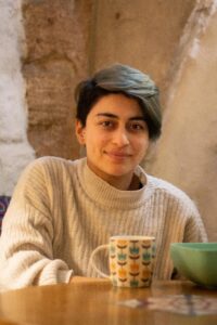„Vor einigen Jahren gab es in Tripoli keine feministische Bewegung und ich musste nach Beirut fahren, um meine Genos*innen zu treffen. Aber die „Thawra“ hat in Tripoli alles verändert. Ich war damals 18-19 Jahre alt und startete eine WhatsApp-Gruppe für Frauen*, in der wir über viele Themen sprechen konnten, die noch tabu waren. Auf einmal ging alles sehr schnell, in den Demonstrationen und Sit-ins traf ich zum ersten Mal Feministinnen in Tripoli! Die sozialen Netzwerke ermöglichten es uns, uns zu vernetzen und unsere Forderungen sichtbar zu machen. Zwei Jahre später haben die Wirtschaftskrise und die Explosion im Hafen von Beirut [am 4. August 2020] der Bewegung einen Schlag versetzt: Wir müssen alle doppelt so viel arbeiten, um zu überleben, und haben nicht mehr das Privileg der Freizeit. Aber es ist keineswegs so, dass der Feminismus hinter anderen Verpflichtungen zurücksteht, im Gegenteil: Es ist ein Überlebensfeminismus, den wir jetzt praktizieren. Es gibt eine große Solidarität, die sich unter anderem auf die Verteilung von Tampons auswirkt, die mittlerweile überteuert und schwer zu finden sind. Viele Frauen müssen sich heute entscheiden, ob sie Tampons kaufen oder eine Mahlzeit essen wollen! Es handelt sich um einen regelrechten Wirtschaftskrieg gegen die Bevölkerung, der vor allem Frauen, Arbeiter*innen und Migrant*innen trifft.